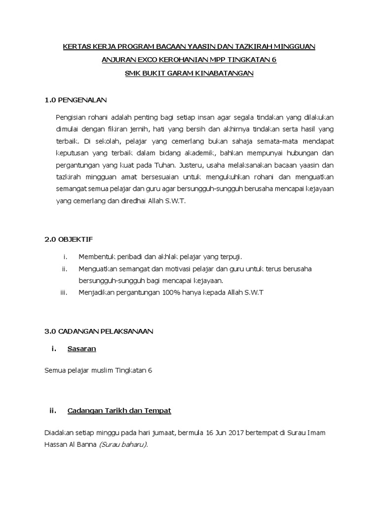 Kertas Kerja Program Bacaan Yaasin Dan Tazkirah Mingguan Pdf